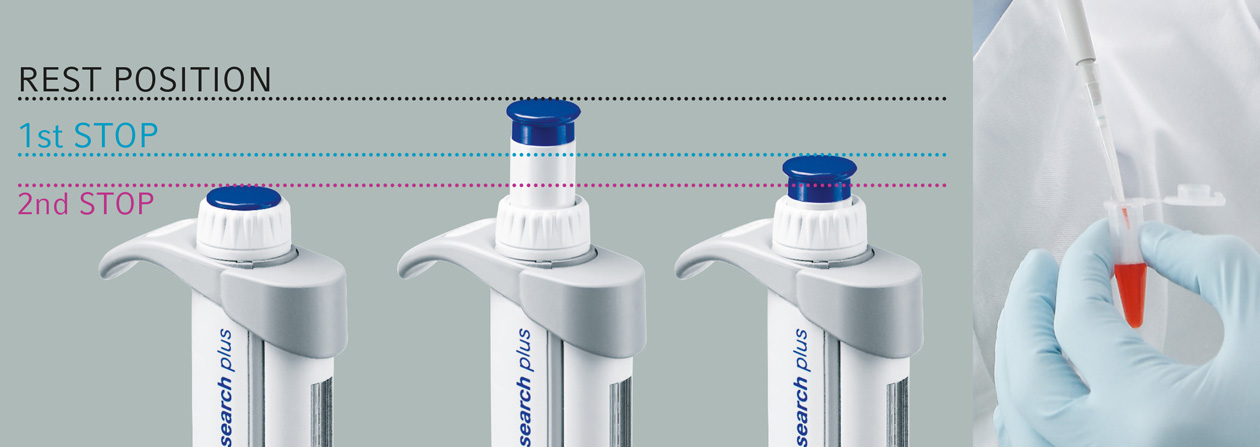 當移液甘油時,我們建議反向移液。利用這種技術,也可以吸出通常為空氣的吹出體積。因此,必須將控制按鈕推到zui低位置,然后在吸入甘油時釋放(圖1)。在分配時,控制按鈕僅被推到**個停止位置,而**中的其余部分被丟棄。像這樣,精確設定的甘油體積可以省去經典的氣墊移液器。通過移液時了解您的液體及其行為,您可以節省時間和壓力。